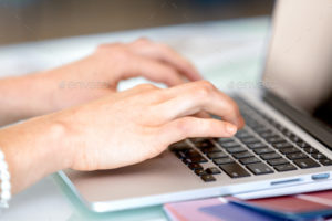 Image of woman’s hands typing